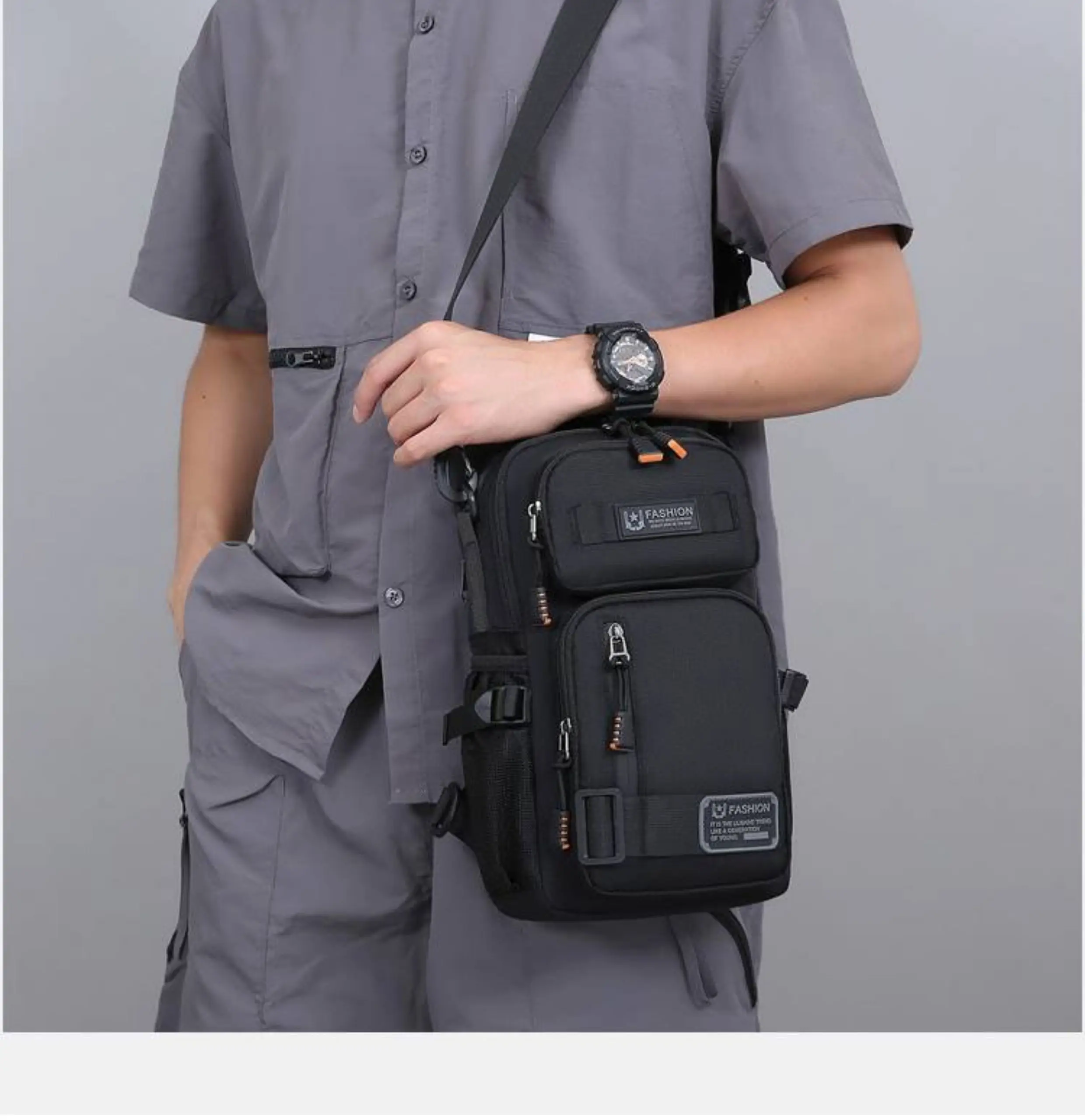 Lightweight Men’s Fashionable Multi-use Chest Bag Travel Sports Single Shoulder Slanting Bag before Chest Double Shoulder Bac…